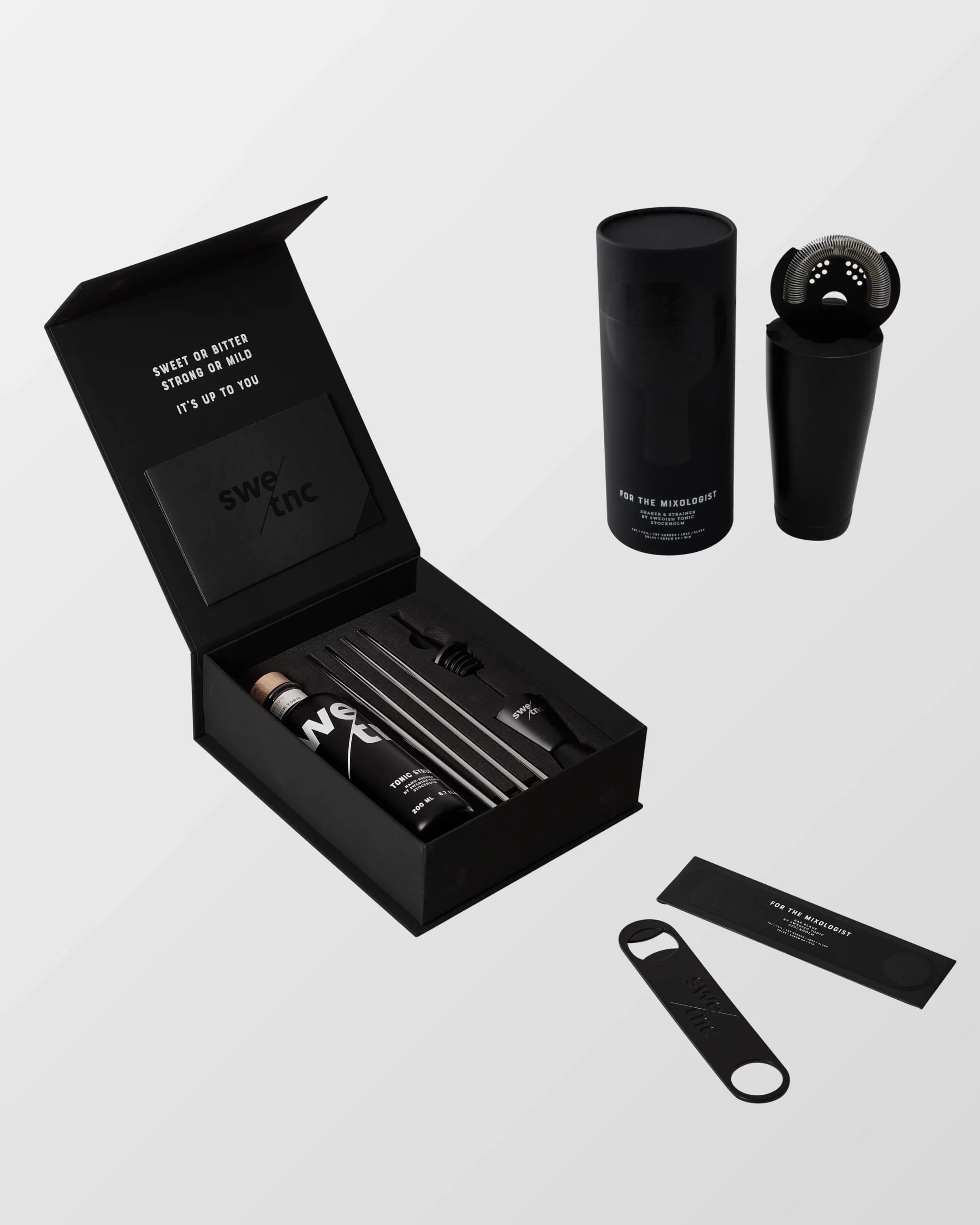 Det perfekta kitet för den som är ny i drinkvärlden, eller nöjer sig med att blanda enklare drinkar. Lämpar sig utmärkt som julklapp tack vare att alla produkter levereras i snygga och mattsvarta förpackningar.